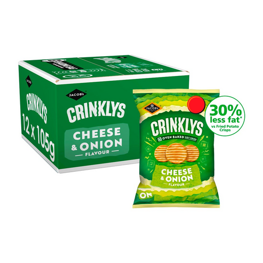 Jacob's Crinklys Cheese & Onion Crisps 15 x 90g Case